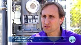 In der Sendung quer des Bayerischen Rundfunks spricht Prof. Sterner von der OTH über Technologien zur Energiespeicherung. Bühnenbild: der vom EVT konstruierte Rieselbettfermenter zur biologischen Methanisierung!